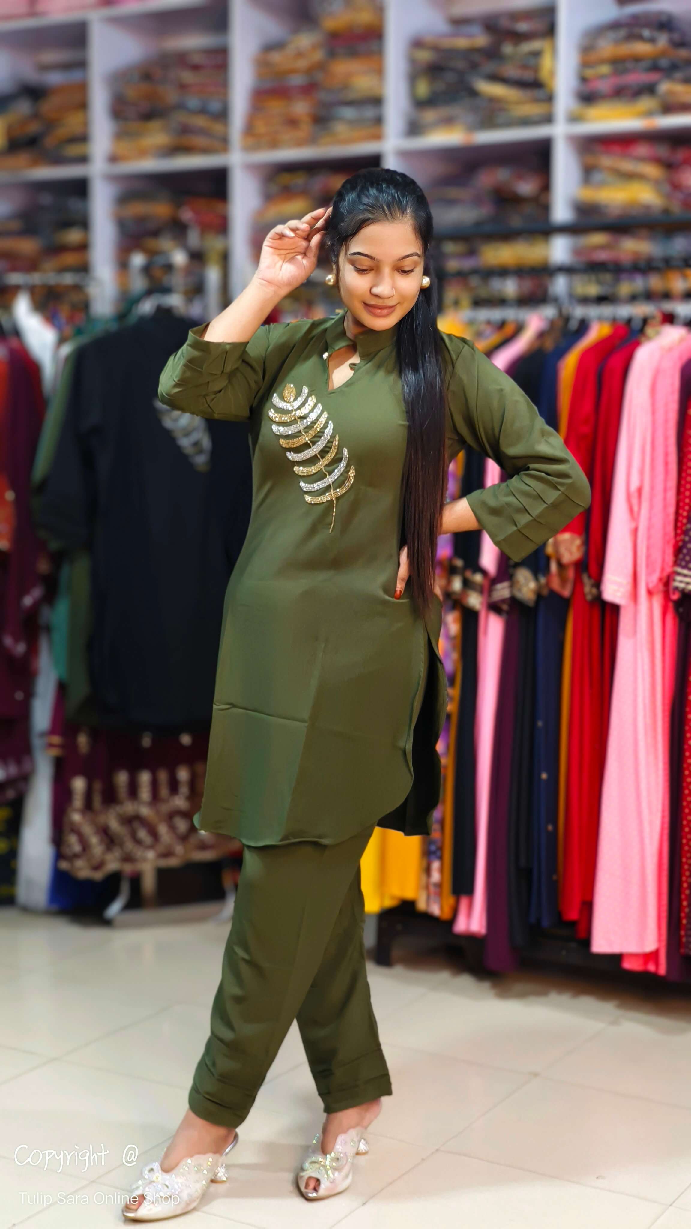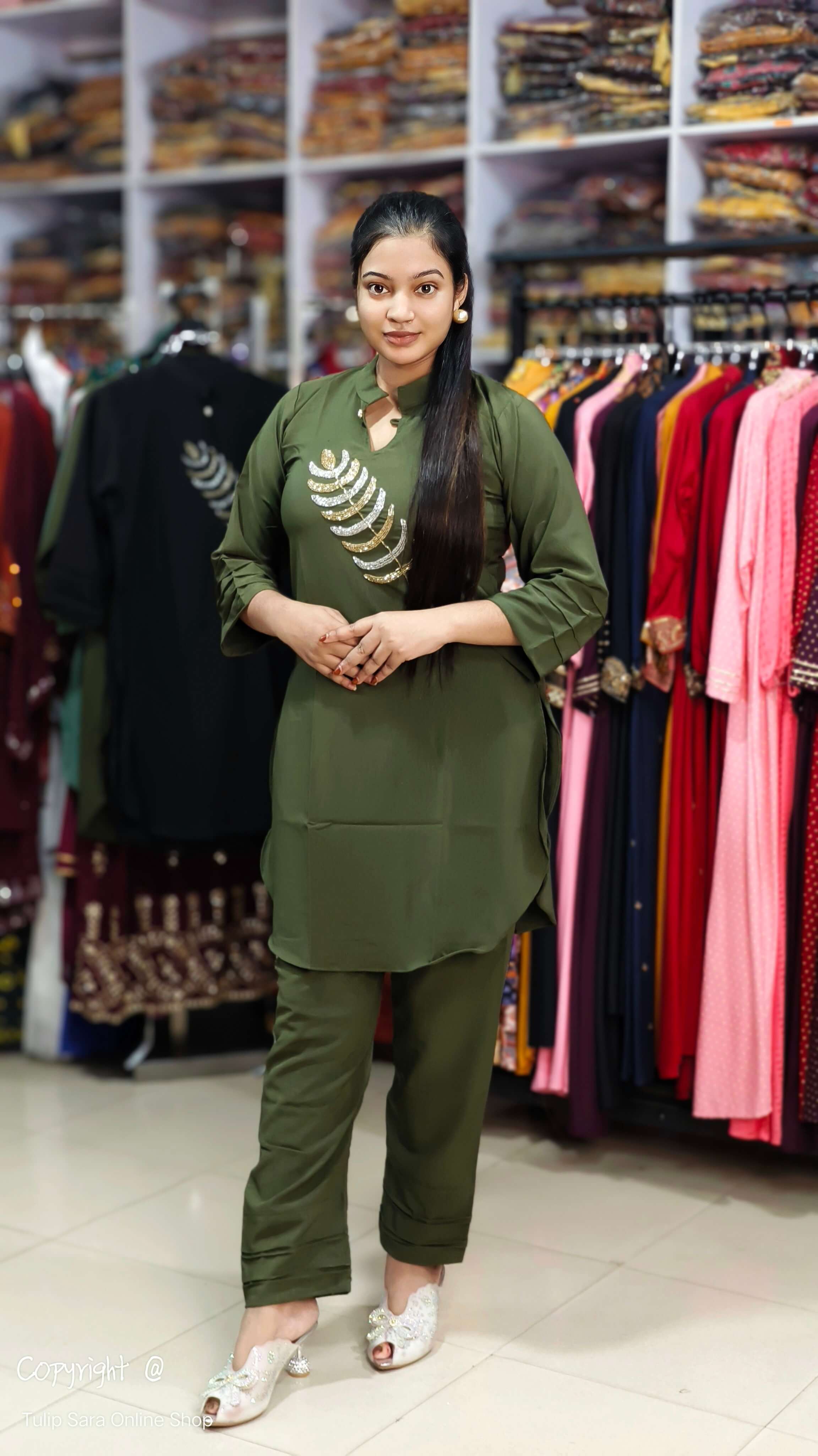 - বুকের উপর কারচুপি ওয়ার্ক করা