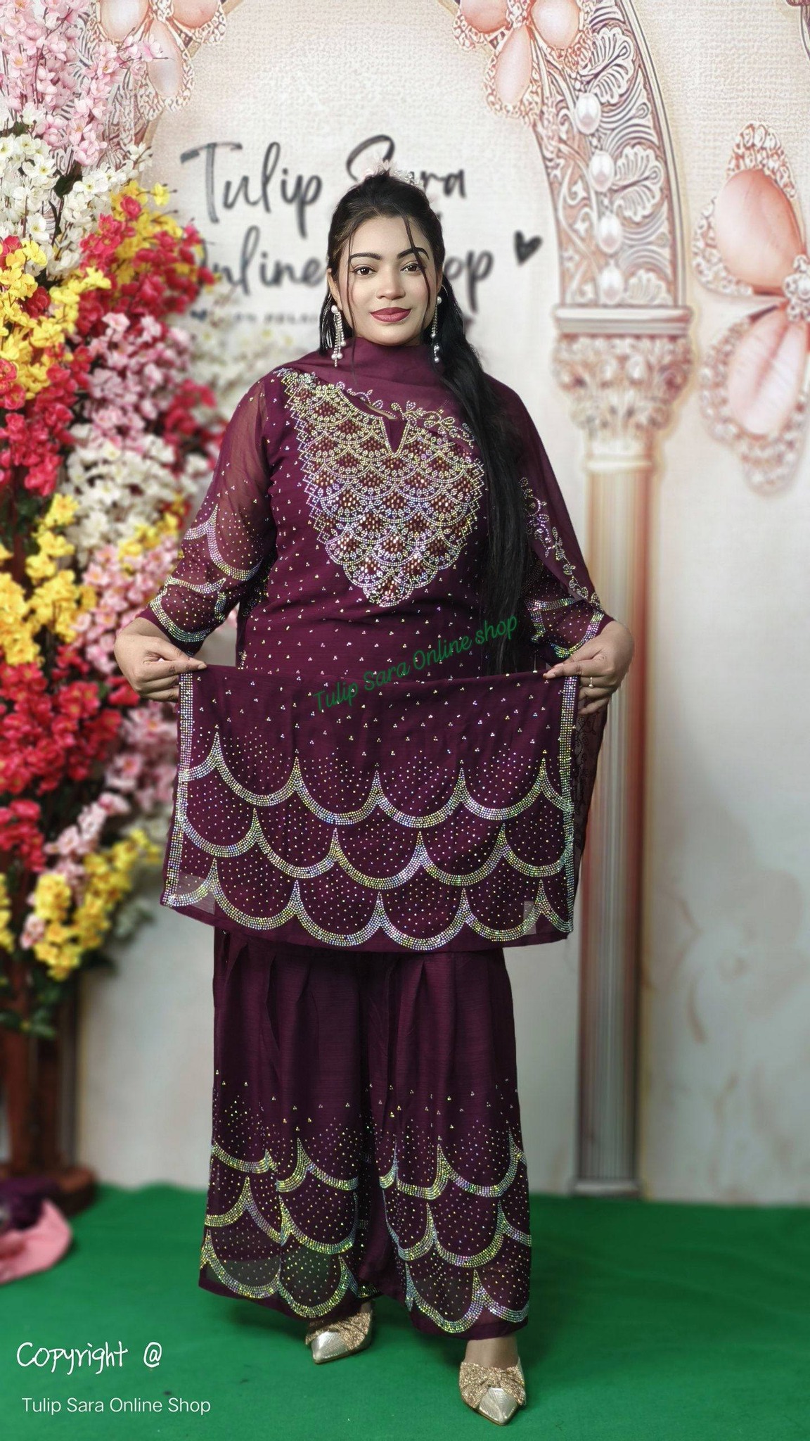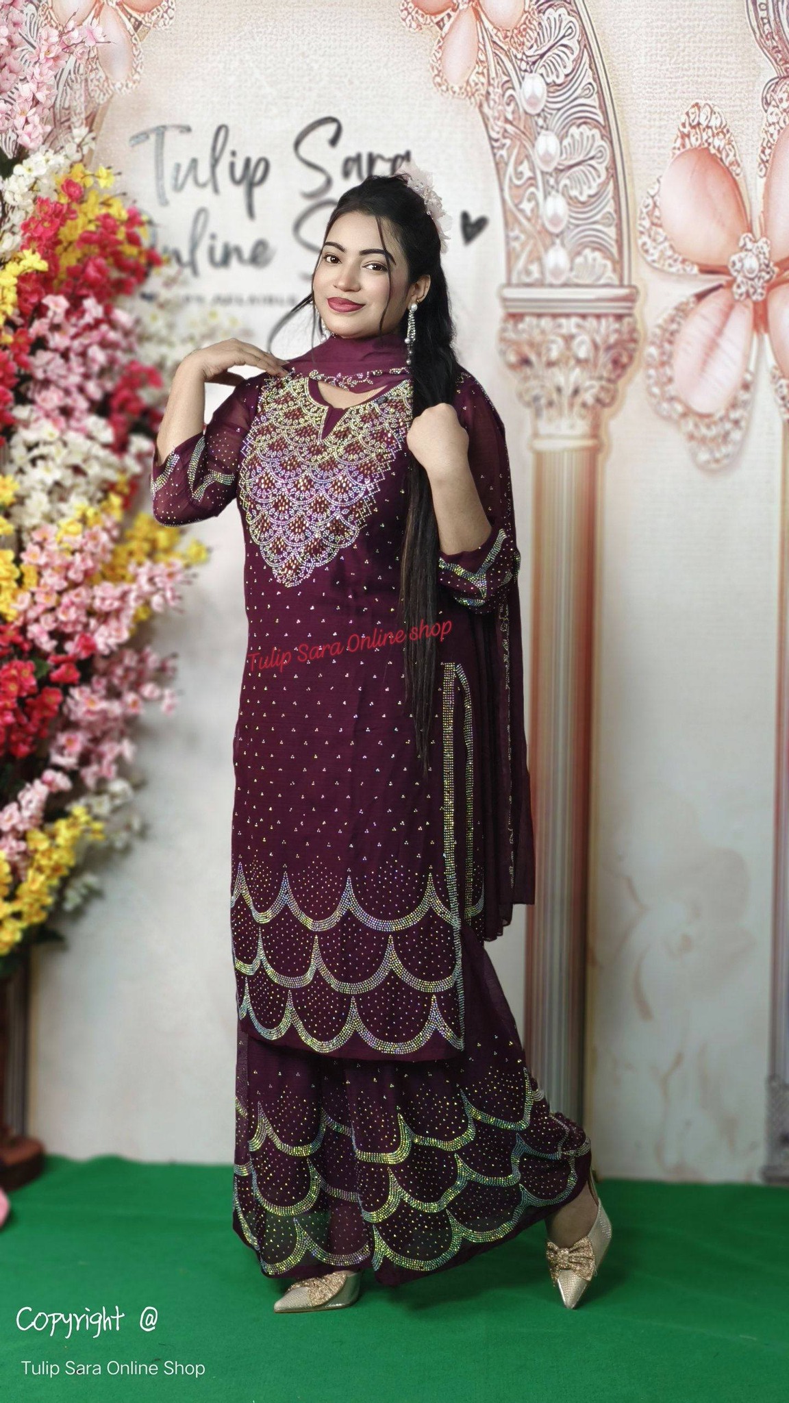 - ফেব্রিক: হোয়াইট গোল্ড জর্জেট
