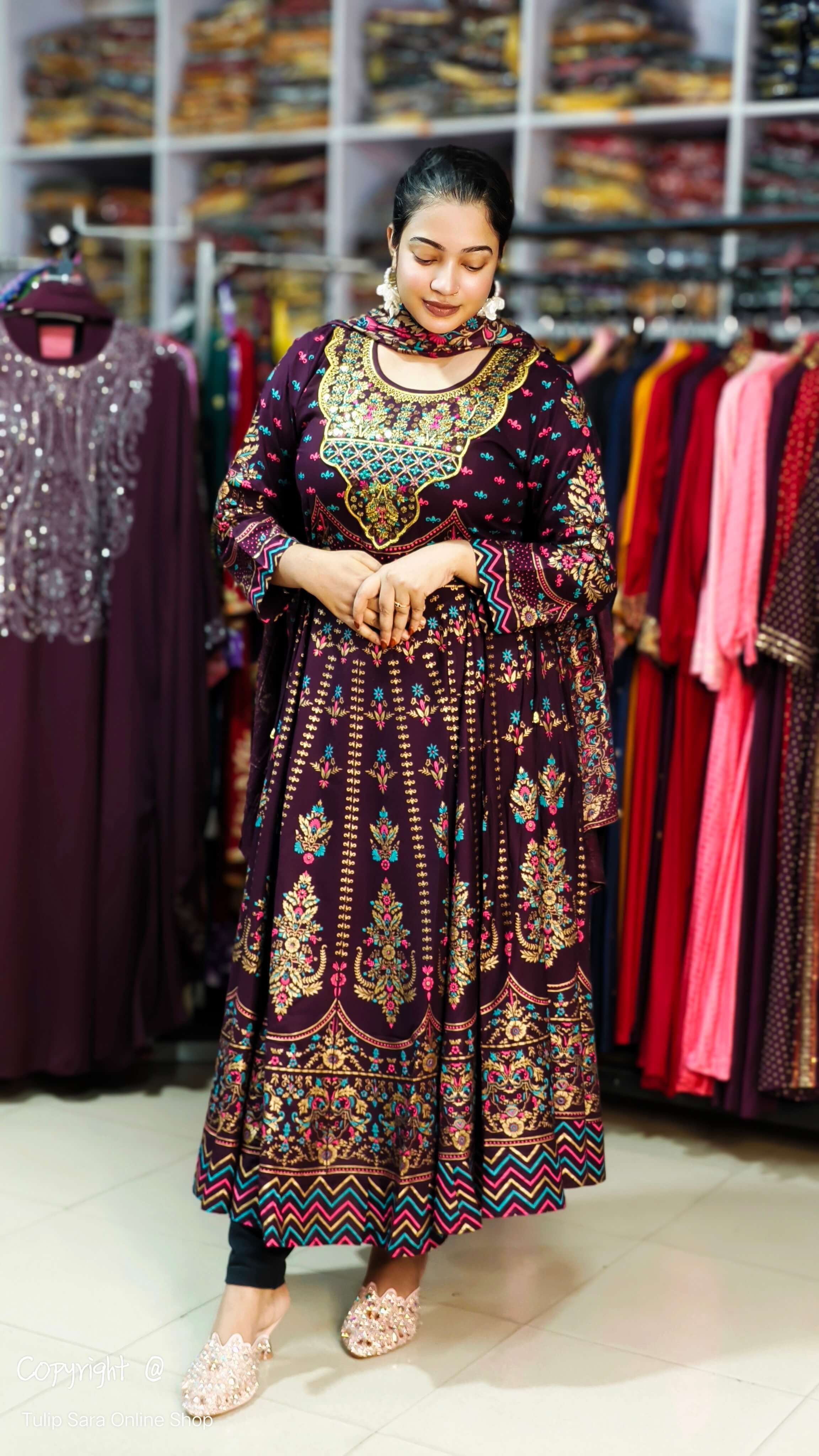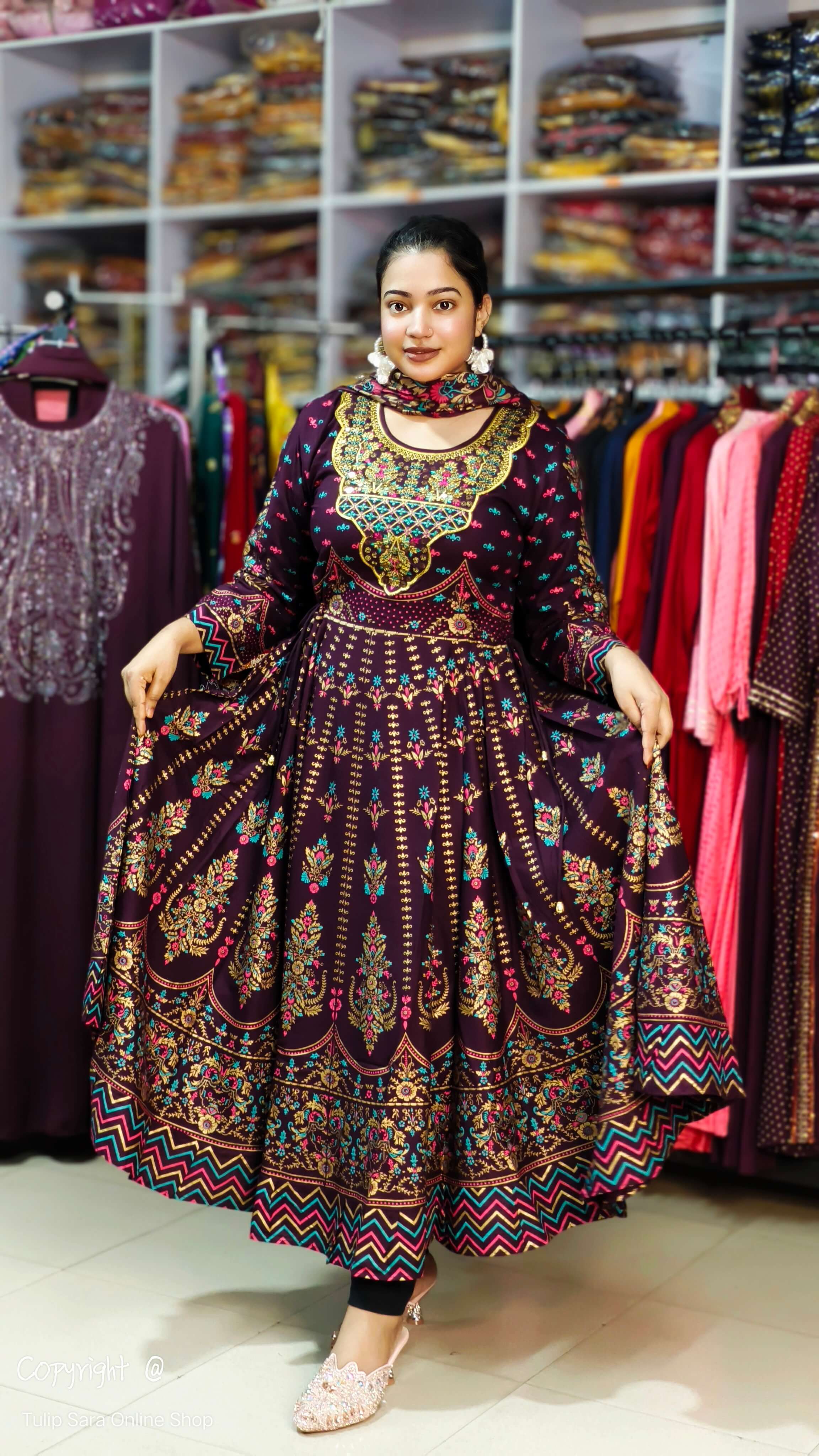 • বুকের উপর এমব্রয়ডারি সিকুয়েন্স ওয়ার্ক করা এবং অল বডি স্কিন প্রিন্ট